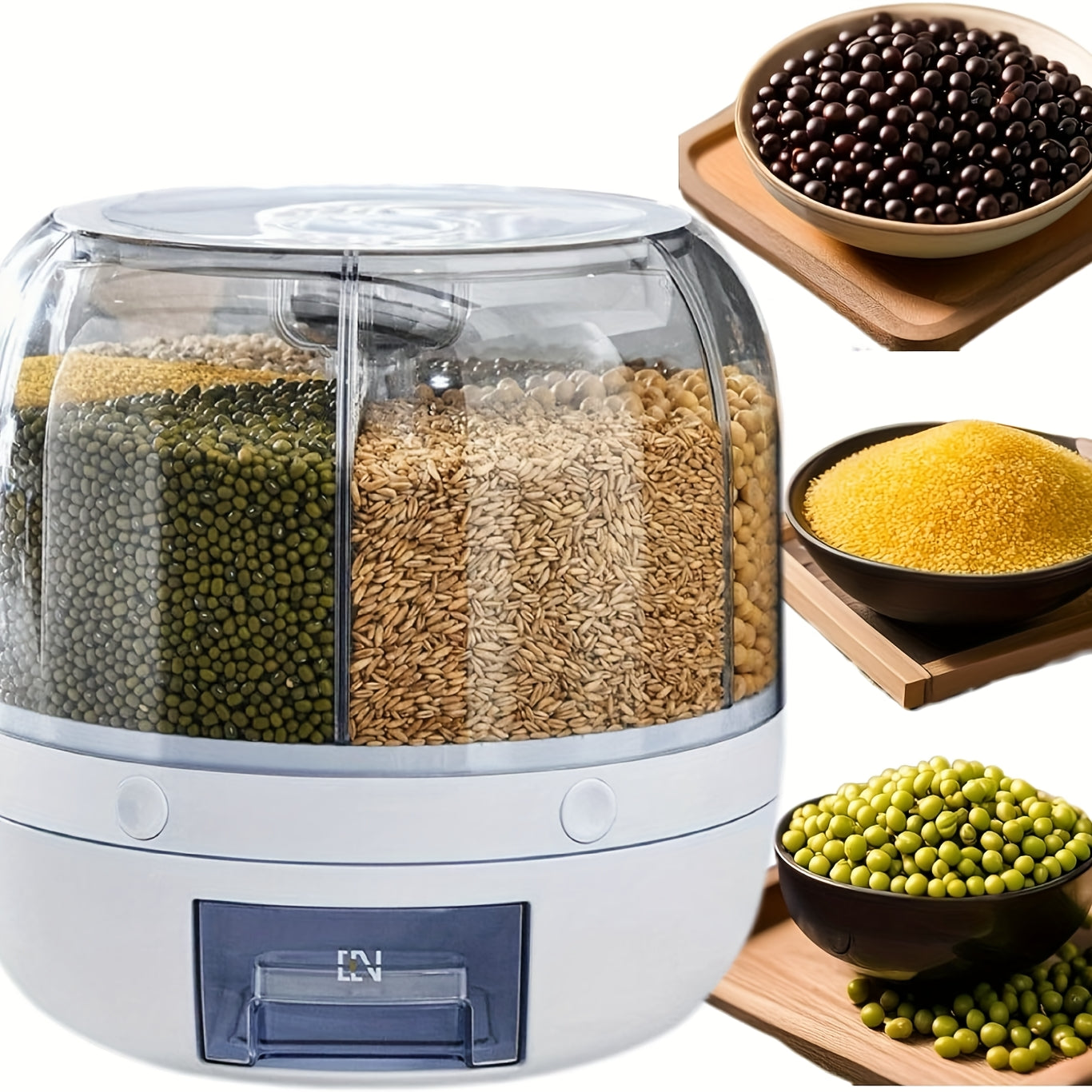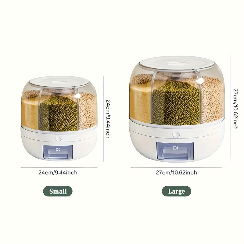 Keep your kitchen organized and your grains fresh with the Multifunctional Rotating Rice Container. Designed with multiple grids for convenient and moisture-proof storage, this container is perfect for storing rice, flour, and various grains. Its large capacity allows you to store bulk items, reducing the need for multiple containers and keeping your kitchen tidy.