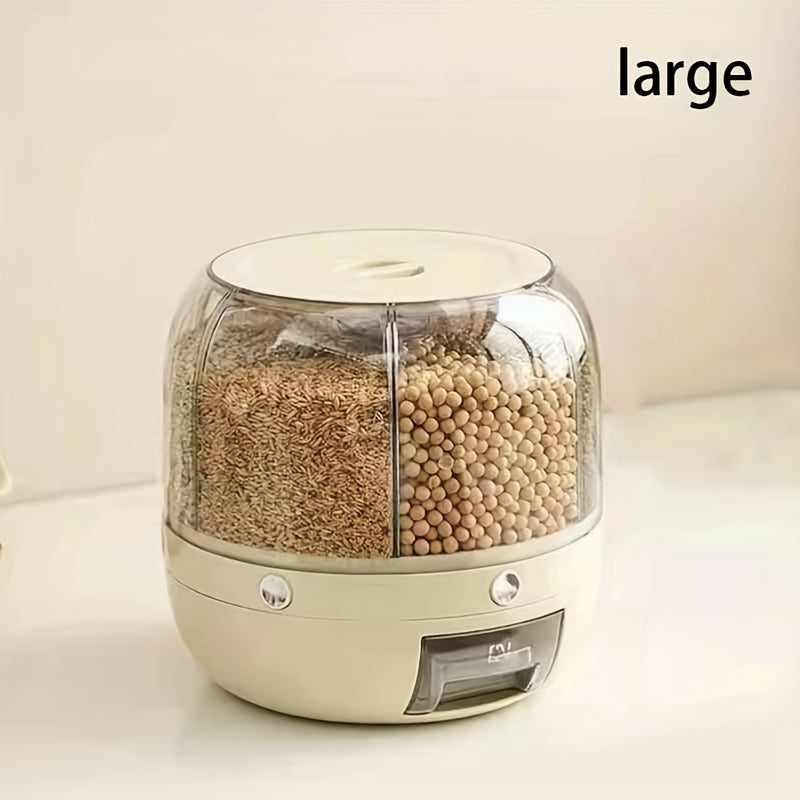 Keep your kitchen clutter-free and your grains fresh with the Multifunctional Rotating Rice Container, a must-have storage solution for any home!